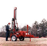DR3K Our most popular compact rig for soils investigation, the DR 3K is a versatile rig with the capabilities of much larger rigs. Designed to run medium range ( 4-1/4" to 6-5/8") hollow stem augers, customers have far exceeded the depth ranges of the required design capabilities. Available with a wide variety of accessories, the DR 3K can be equipped to truly be an all-purpose rig. Available as a skid, tandem trailer, truck, track, deck engine or PTO. |